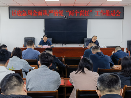 四川新闻网消息 近日,旌阳区应急管理局召开全面从严治党“两个责任”工作推进会。局领导班子成员,派驻纪检监察组负责人,全体党员干部参加会议。