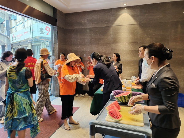 “感谢新德大,感谢社区,为我们想得这么周到,今天的西瓜都特别的甜!”从事文明劝导工作的邓大姐一边品尝着西瓜一边开心地说。