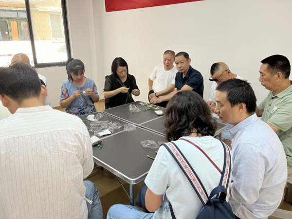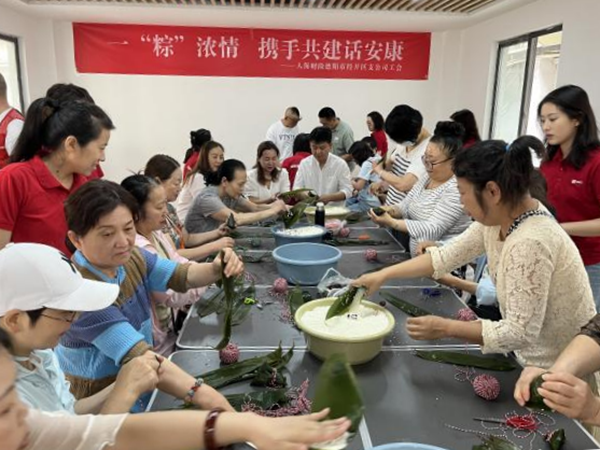 做完香囊后,大家又开始一起包粽子。看着桌子上准备好的粽叶、糯米、红枣、红豆、绿豆和棕绳等材料,居民和残友们顿时来了兴趣,纷纷拿出看家本领,理粽叶、填糯米、包粽子、话家常……一片片清香的粽叶、一粒粒晶莹的糯米、一颗颗红色的大枣,由一双双巧手熟练地包起来,转眼间一个个有棱有角的玲珑可爱的粽子新鲜“出炉”了。