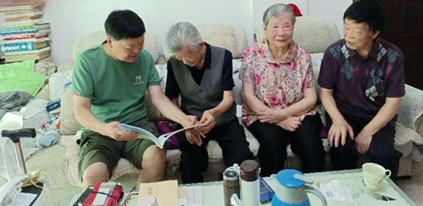 70年党龄的退休老党员黄汉文,由于年龄偏大,行走困难,德阳党小组就把活动现场搬到黄老家里开展活动,同时还给他送去学习资料和慰问品,带上组织的温暖,让黄老十分感动。(供稿:中共旌阳区委党史研究室退休党支部)
