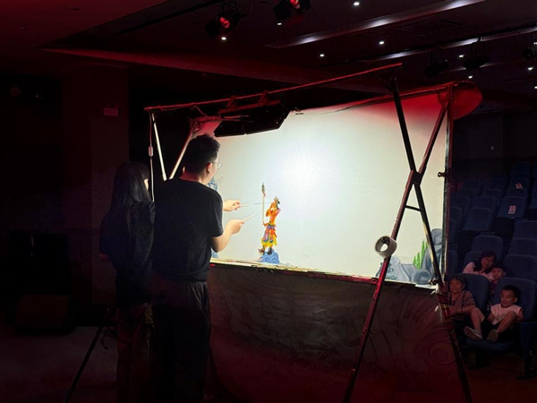 展演结束后,王浩斐还请小朋友们上台,现场指导皮影戏的操作技巧。前来观看表演的学生黄书菡说:“今天来到文化馆,体验到了皮影戏的魅力,很开心。”