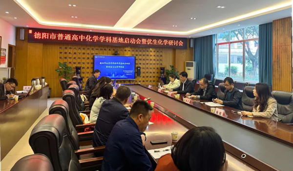 为了更好适应课程改革和新高考改革,学习转化南通普通高中学科基地建设经验,进一步推进德阳市高中化学学科基地建设,近日,德阳市高中化学学科基地启动会在德阳中学举行。德阳市教育科学研究院副院长李东、学科基地校专家组成员及各学校高三特优班化学老师参加了本次会议。会议由德阳中学教务处副主任张涛主持。