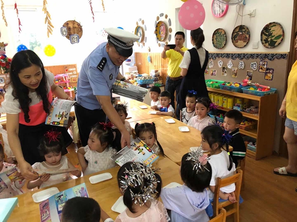 四川新闻网德阳6月2日讯 在“六一”儿童节来临之际,为进一步提升幼儿园交通法规意识和防范意识,预防和减少学龄前儿童交通事故发生,6月1日上午,广汉交警大队民警积极走进辖区幼小学校,以寓教于乐的形式,围绕“一盔一带”为主题,给同学们送去了一份特殊的儿童节礼物,获得了师生的集体点赞。