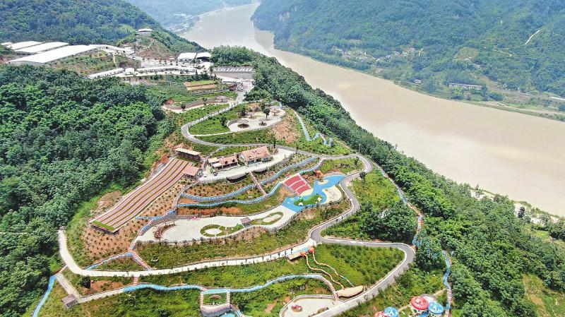 7月28日航拍的峨边县五渡镇先锋村萌萌猪亲子乐园。该乐园以“自然、农业、猪”为主题,以亲子教育为核心板块,是峨边农旅融合的一个典范。