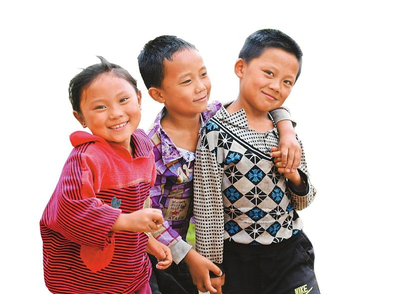 走进峨边县新林镇茗新村,随手拍下的孩子开心笑脸。本版摄影 本报记者 肖雨杨