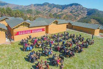 2月25日,全国脱贫攻坚总结表彰大会上,凉山州昭觉县三岔河镇三河村被授予“全国脱贫攻坚楷模”荣誉称号。图为两年前的三河村搬迁点,村民们喜气洋洋,围坐在一起吃坝坝宴。四川日报全媒体记者杨树摄(资料图片)