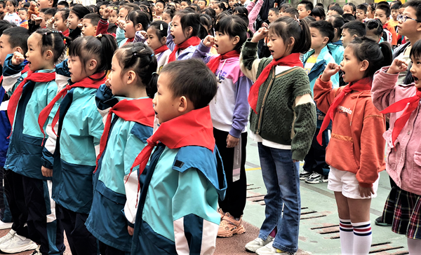 四川新闻网消息 为庆祝中国少年先锋队建队72周年,引导队员们继承和弘扬少先队的光荣传统,增强少先队员的光荣感和自豪感,以实际行动践行社会主义核心价值观,10月13日上午,旌阳区北街小学举行了“请党放心 强国有我”新队员入队仪式。