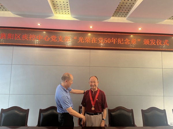 7月1日,旌阳区卫健局党委组织局机关党委、区中医院党委、区疾控中心党支部等党组织,走访慰问了系统党龄50年老党员,各党组织书记为老党员们颁发佩戴了“光荣在党50年”纪念章,并致以热烈祝贺和崇高的敬意。
