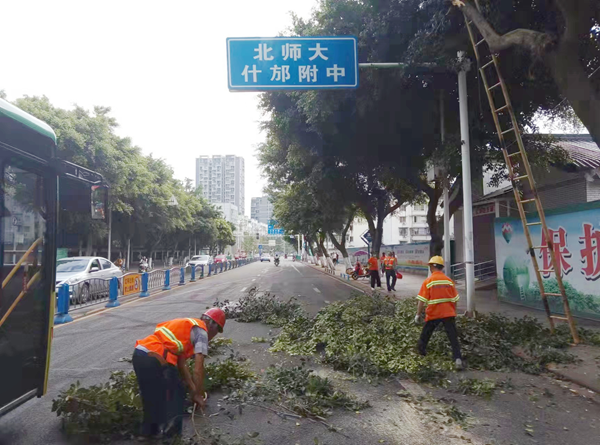 通过与交警部门联动,开展树枝遮挡交通设施专项整治行动。认真研判、科学部署,采取“点面结合”方式,重点清除遮挡路口红绿灯、交通监控、道路指示牌的树枝,全面修剪飞枝,剔除枯枝、病枝、下垂枝,疏剪过密枝,改善树木通风透光条件,避免夏季汛期“头重脚轻”发生倒伏,及时消除安全隐患。两周内分班分次完成了城区蓥峰南路、亭江东路、蓥华山路等18条道路修剪工作,共计修剪遮挡交通设施树枝68处,保障道路交通视线通透,让市民出行更安全。