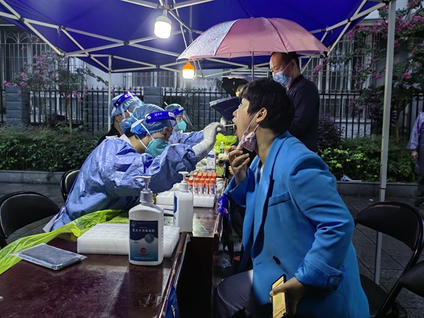 根据各街镇点位设置、采样人数等实际情况,卫健局严格落实责任,完善保障措施,提高工作效率,真正做到“应检尽检、不漏一人”。当天下午17点,各个点位采样工作正式拉开序幕,医务人员穿着隔离衣,戴着口罩、面屏、手套一刻不曾停歇的采集着样本。在采样现场,可以看到“大白”们忙碌的身影,取管、消毒、采样、封存,采样过程快准稳,整个流程井然有序的进行着。