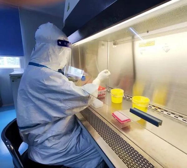前方一批批医护人员奔赴采样点,后方核酸检测人员争分夺秒接力。全区6个核酸检测实验室同步开启核酸检测筛查任务,检验报告的背后是24小时不停歇的“后方战场”的检验队伍,他们不分昼夜的“战斗”,扫码、提取、检测……,此时实验室按下了“快进键”,大家焦急等待的结果是他们的心头大事。