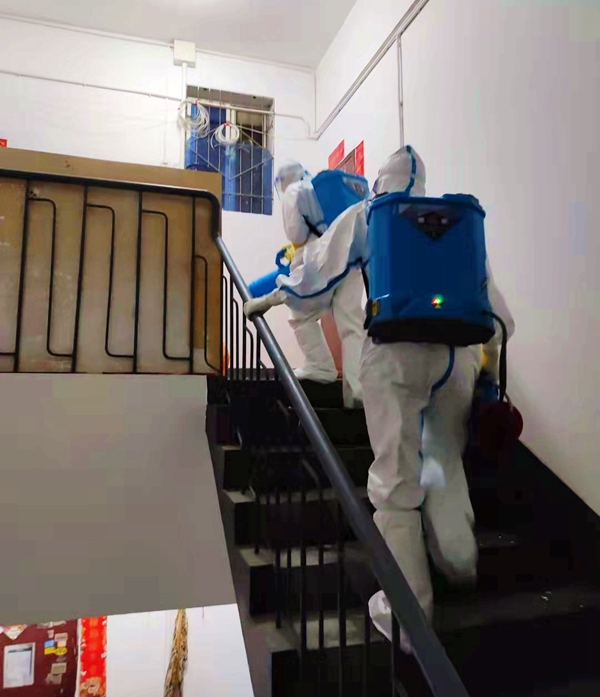 在疫情最危险的地方,终末消杀队员总是第一个冲上去的,也是最后一个撤离的。队员们胆大心细、科学严谨的工作态度换取了环境的安全,用自己的实际行动保卫着我们的家园。