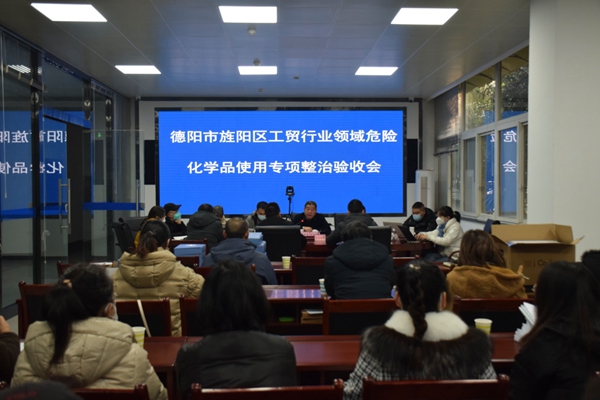 验收组一行通过听取汇报、查阅资料、实地检查和座谈交流等方式进行,听取了旌阳区关于工贸行业领域危险化学品使用专项整治工作情况汇报,查阅了区安办、区经科信局、区农业农村局、区商务局、天府旌城、天元街道等单位在专项整治工作的开展情况及25家涉及危险化学品使用的工贸行业生产经营单位安全管理资料,对照《德阳市工贸行业领域危险化学品使用安全专项整治验收标准》,逐项逐条检查,并结合工作开展和安全管理资料等实际情况进行了严格评分。