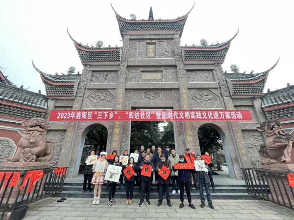 四川新闻网消息(吴宏 记者 陈斯)腊梅吐蕊,新年到来,2023年德阳市旌阳区“三下乡”“四进社区”暨新时代文明实践文化进万家活动,自1月3日起,陆续深入基层村和社区,面对热情的群众,艺术家们送上免费的上梅兰竹菊、水墨山河等美好寓意的画作,饱含美好祝福的春联、福字以及欢快的广场健身舞教学培训,活动所到之处,皆是欢声笑语、年味十足。