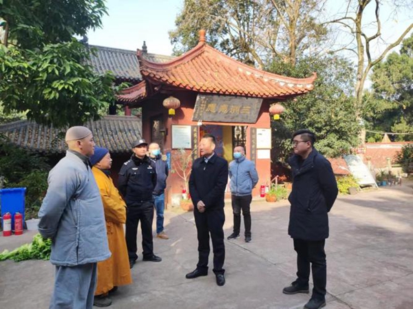 督导组先后前往双东镇玉佛寺、和新镇普渡寺,现场查看森林防灭火 防火码使用、卡点值守、日常巡护、物资储备、宣传教育等工作 开展 情况 ,了解各镇及寺庙为化解春节期间各项风险发生采取的防范措施 。