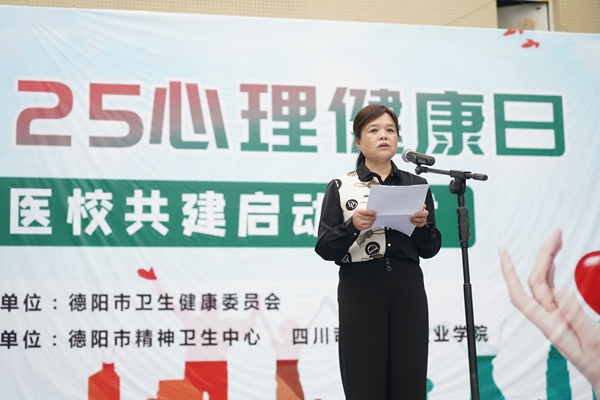 德阳市卫生健康委员会二级调研员尹红参加活动并致辞,德阳市精神卫生中心党支部书记张虓、院长杨晓斌、副院长罗彦,中国民用航空飞行学院、四川工程职业技术学院、四川建筑职业技术学院、四川司法警官职业学院、四川护理职业学院等高校相关领导和负责同志参加本次活动。