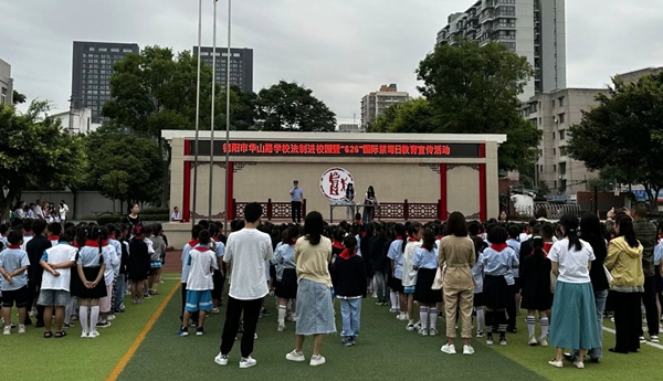 四川新闻网消息 为进一步强化禁毒宣传教育工作,使未成年人更加清晰、更加全面、更加彻底地认识毒品、了解毒品,从而更加自觉地远离毒品,在6.26国际禁毒日来临之际,旌阳街道红雨社区携手旌阳街道“6.26”禁毒服务中心、旌阳派出所深入德阳市华山路小学,为全校师生开展《法制进校园暨“6.26”国际禁毒日教育宣传活动》。