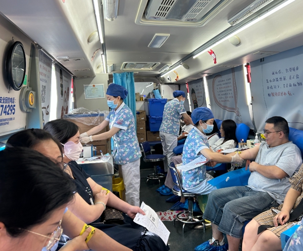 登记、填表、初筛、采血......在血站工作人员的指导下,大家分批进行献血流程,活动有序地进行。