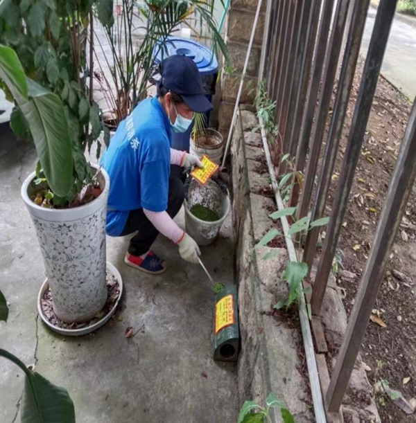 投药现场,工作人员分工合作,对前期布设的灭鼠毒饵盒进行排查及鼠药投放,对损坏及遗失的进行修复和补装;对孳生水体进行药物喷洒消杀,对下水管道井盖内喷洒消杀药物。通过线上线下的宣传方式,引导居民一起动手净化、绿化、美化家庭和公共外环境,清除卫生死角和垃圾杂物,消除“四害”孳生环境,提升人居环境。