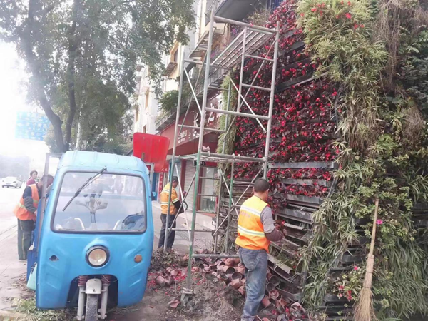 四川新闻网消息 入冬后,随着天气逐渐寒冷,什邡市亭江东路的立体绿化景观效果日渐不佳,以前的草花有不少已经枯萎,为提升绿化品质,增强冬季立体绿化景观的观赏效果,什邡市综合执法局园林所开展了立体绿化草花更换工作,确保城市街景美丽常在。
