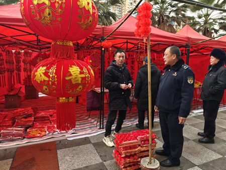 三是强化执法监管,全力维护秩序。为规范临时摊位周边市容环境,在经营期间(1月26日—2月9日)综合执法局每天安排执法人员加强巡查,及时纠正商家违规行为,督促经营人员严禁售卖违禁物品;按照规定时间和规定范围开展经营;做到不占用车道、不堵塞交通、不噪音扰民;及时对摊位周边进行清扫,共同营造整洁有序的节日环境。