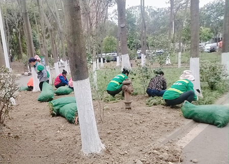 添新苗,治理绿化缺株断档。以提升绿地档次为目标,按照“增绿、添彩”的工作思路,重点对城区街道绿地进行排查和统计,针对植被稀疏、缺株断档区域开展绿化修复工作,通过栽植地被植物、灌木、花卉等,“修补”绿地“妆容”,全面提升绿化带景观效果。目前,已在二十一支渠等地补植茶花200株,麦冬560㎡。