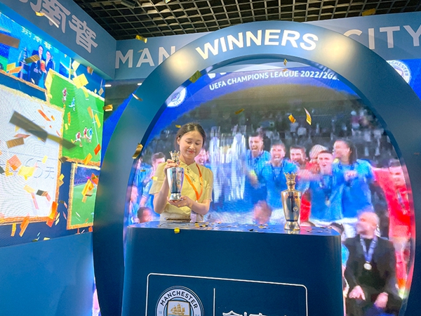 剑南春酒庄展厅布置工作也在如火如荼地推进中。古蜀铜脉展厅通过光影与现实的交织,历史与科技的融合,光影与色彩的交互,带领游客穿越古蜀,沉浸于三星堆神秘色彩当中,感受剑南春传承千年的酿造技艺。冠军品质展厅模拟伊蒂哈德球场,让游客感受剑南春与曼城对于冠军品质的追求。展厅内还设置了曼城足球俱乐部的球星影像和奖杯,让游客现场体验获奖时刻。