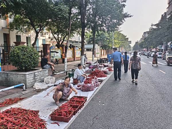 四川新闻网消息 近期,红辣椒和各类夏季蔬菜大量上市,为有序规范市容秩序、更好地服务市民、促进本地蔬菜的畅销,市综合执法局持续在什邡市外西街设置季节性农副产品临时规范点,给农民朋友们提供免费的指定的蔬菜交易场所。