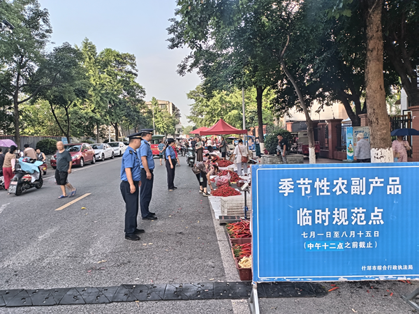这一举人性化执法得到了广大农户和市民的点赞,既为农民朋友提供一个规范、有序的销售平台,也满足了市民购买当季产品的需求,积极展现了精致生活城的浓郁烟火气。接下来,什邡市综合执法局将持续加大对该临时规范点的监管、巡查力度,引导摊贩们按管理规定开展经营,坚决维护和谐、有序的市容环境卫生秩序。(供稿:什邡市综合执法局 陈飘飘 王君)