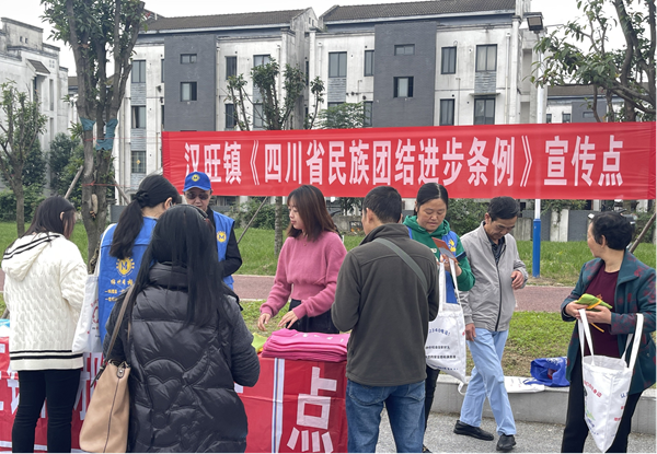 一是强化宣传教育,谱写民族团结“和美诗篇”。紧紧依托辖区内德阳——阿坝生态经济产业园区,积极搭建汉、藏、羌文化交流平台。形式多样开展民族团结进步宣传教育,发放《民族团结进步宣传手册》等宣传资料200余份,利用园区、企业、学校等场所电子宣传屏播放铸牢中华民族共同体意识宣传标语300余条,营造起全镇各族群众关心、参与民族团结进步工作的浓厚氛围。