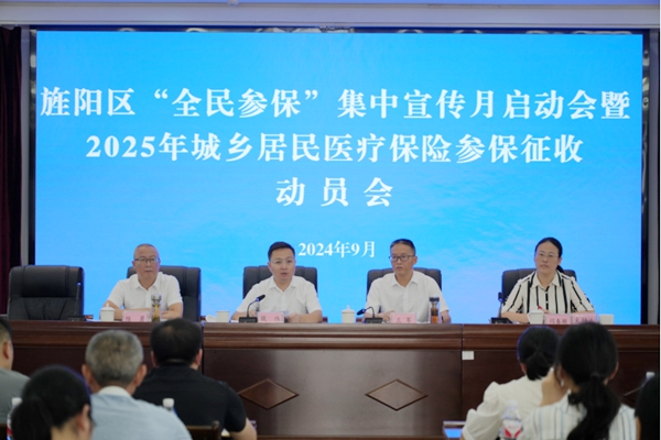 2024年9月9日上午,旌阳区召开“全民参保”集中宣传月启动会暨2025年度城乡居民医疗保险参保征收动员会,区委常委、区政府常务副区长魏伟,区政府副区长王军出席会议并讲话,区税务局,区医疗保障局主要负责同志、区级有关部门分管负责同志及具体经办人员、各镇(街道)分管负责同志及具体经办人员、中国人寿旌阳支公司、各大银行负责同志和经办人员参加会议。