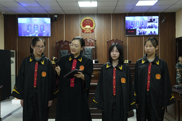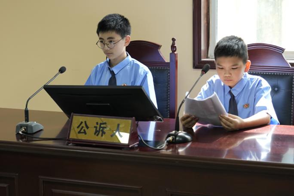 “请大家保持肃静,现在宣布法庭纪律……”“书记员”字正腔圆地宣读法庭纪律。随着“审判长”手中法槌地庄重落下,一场针对“光头强”盗伐林木行为的模拟法庭拉开了帷幕。