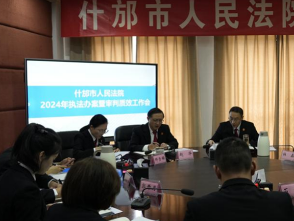 为深入贯彻落实全市法院执法办案工作推进会精神,进一步提升审判执行工作质效,近日,什邡法院召开执法办案暨审判质效工作会,党组书记、院长李汝良主持会议并讲话。
