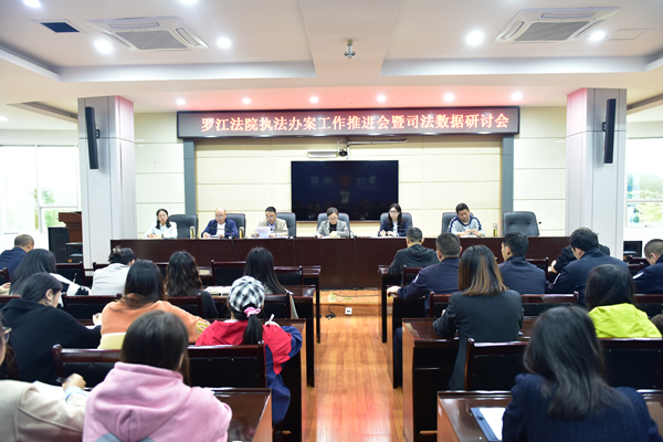 近日,罗江法院召开执法办案工作推进会暨司法数据研讨会,会议由院党组成员、执行局局长鲁万千主持,全体班子成员、审委会专职委员、各部门负责人,立案、审判、执行部门全体干警参加会议。