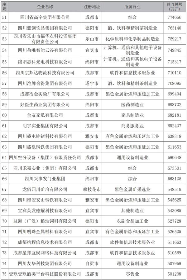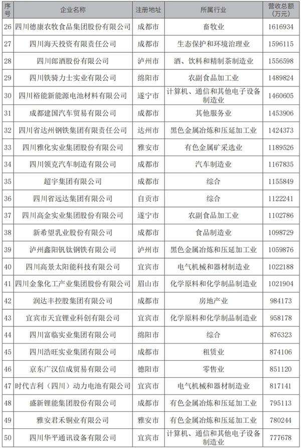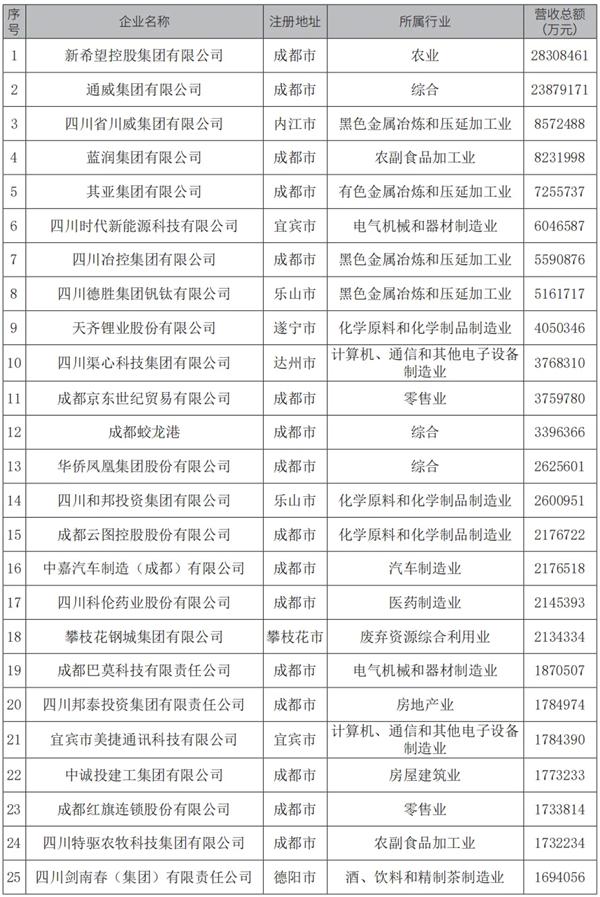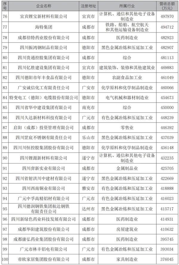 10月29日,四川省工商联发布“2024四川民营企业100强”榜单。