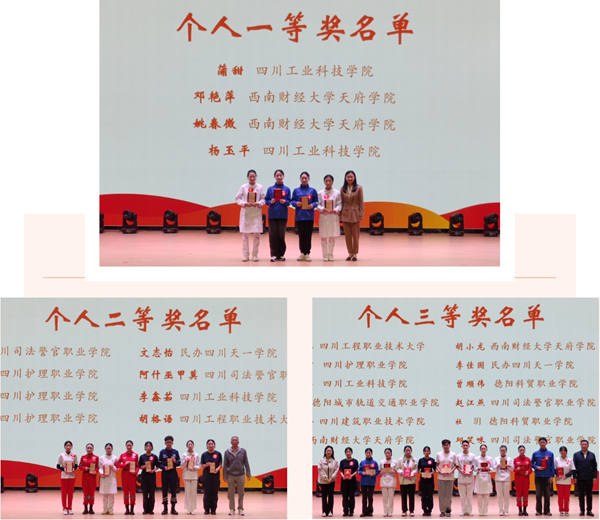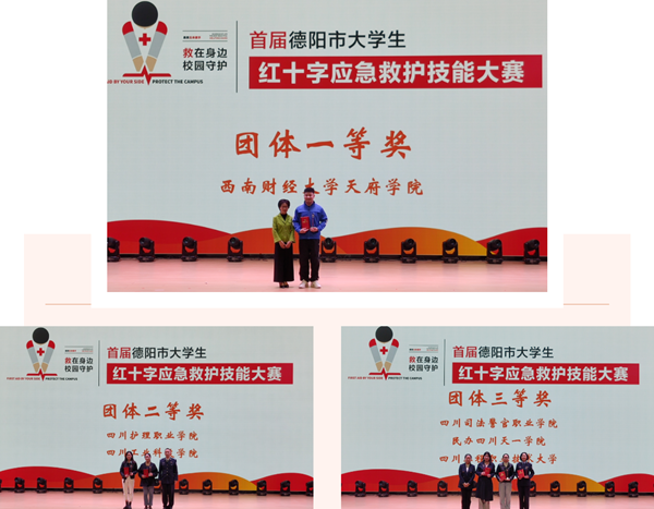 下午的决赛现场气氛紧张而热烈,整个赛场弥漫着一股紧张而又充满活力的氛围。选手们精神抖擞地展示心肺复苏+AED使用、创伤止血包扎、创伤骨折固定等应急救护技能,他们动作规范、操作熟练,充分展现了扎实的专业功底和良好的心理素质。评委们认真观察每一个参赛队伍的表现,从操作规范、技术熟练程度、团队协作等方面进行严格评分。选手们的拼搏精神和专业素养,深深地感染了在场的每一个人。这场大赛不仅是一场技能的较量,更是一次对生命的敬畏和守护。经过激烈角逐,最终西南财经大学天府学院德阳校区荣获团体一等奖,四川护理职业学院、四川工业科技学院荣获团体二等奖,四川司法警官职业学院、民办四川天一学院、四川工程职业技术大学荣获团体三等奖,蒲甜等24名队员荣获个人单项奖。出席比赛的领导为获奖队伍和个人颁发荣誉证书,向他们表示热烈祝贺。