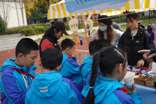 活动现场,同学们首先在养生集市中感受到了古老智慧中蕴含的健康密码。通过集市的形式,同学们不仅可以了解到中药材的识别、药性,还能亲身体验中药材的炮制过程。在沉浸式体验环节中,医院特别设置了儿童中药茶饮品尝区,让同学们在品尝中了解到中药的药性和功效。此外,医院还为同学们准备了八段锦学习、德阳地道药材讲解等互动环节,让同学们在玩乐中学习到健康知识。