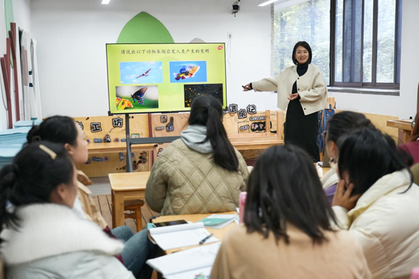 唐老师从科探区环境布置、活动流程以及材料如何分层投放等多个方面进行培训学习,内容涵盖了生命科学、物质科学、地球与空间、科学与技术等多个方面。通过多维度的讲解,让参培教师明晰使用低结构设计的材料,让幼儿在与材料的互动中获得物体属性和事物关系的认识,帮助幼儿提升科学探索能力,培养科学精神。