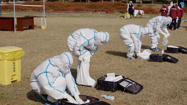 随后,以一起“聚集性不明原因肺炎”疫情为背景,通过实战演练和现场讲解相结合的方式,应急队员根据各自的工作职责、不同角色,将病例发现与报告、现场流行病学调查与采样排查、初步风险评估与应急响应、流调溯源与密接追踪管理、采样检测与实验室生物安全、环境消毒、健康宣教、风险沟通与舆情应对、疫情处置监督、应急响应终止等场景进行了演示。各参演队伍协调配合、衔接流畅、精彩演绎,完整演示了应对“聚集性不明原因肺炎”疫情处置全部过程。