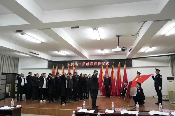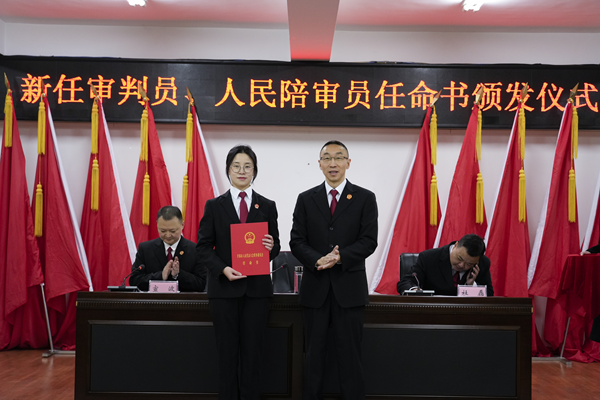 在庄严肃穆的氛围下,党组书记、院长李汝良向1名新任审判员、34名新任人民陪审员颁发任命证书,并分别进行就职宣誓。