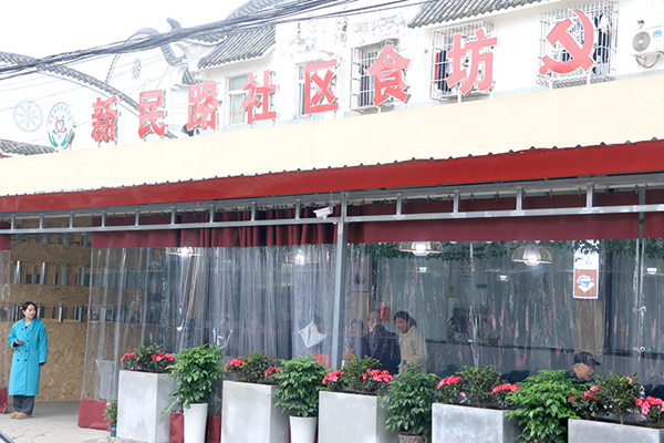 走进新民路社区食坊,映入眼帘的是摆放整齐的桌椅和敞亮、温馨的室内环境。厨房里,厨师们正在忙着备菜。