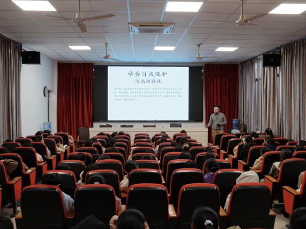 德阳市家庭教育服务中心易老师为初二的女生带来青春期自我保护知识教育专题讲座。她结合具体数据、实际案例,为大家科普必要的防范知识:增强防范意识,勇敢拒绝,及时报警,冷静应对。