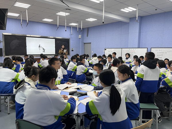 赵兴词老师执教经典篇目《狼》,课堂流程条理清晰,先引导学生细致梳理故事情节,随后带领学生深入品味角色形象,通过对比辨析角色的智慧与愚钝,最终引导学生共同探讨文章所蕴含的深刻主题。整堂课气氛异常热烈,学生们积极参与,辩论是非,各抒己见,呈现出一堂别开生面、充满活力的语文课。