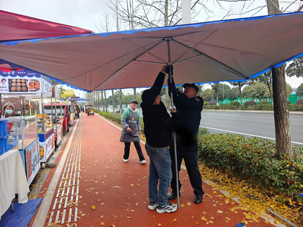 通过多方协调与努力,新增的临时摊区于12月7日正式使用,约能容纳40余个摊位,现已有36个摊贩在经营。为确保临时摊区有序运营,市综合执法局秉持“便民不扰民”的原则,给经营人员提出相应管理要求:一是禁止在临时摊区以外的区域占道经营,如学校后门和马路对面;二是临时摊区以绿廊白线为界,线内经营,不得占用绿化带和人行道;三是要求摊贩积极主动配合执法人员管理,自觉维护好周边环境卫生,做到人走场清,共同守护临时规范点秩序。