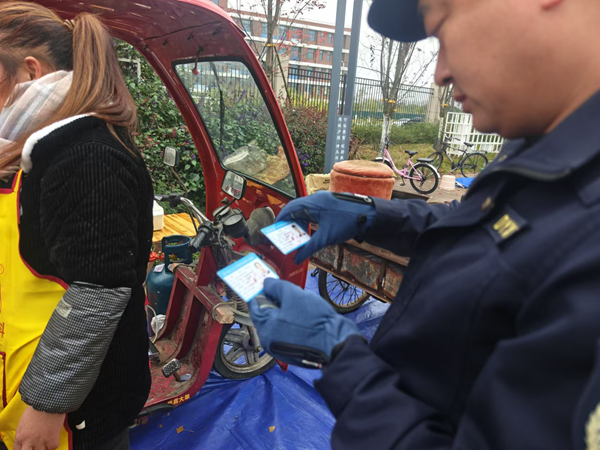 | 执法人员检查摊点燃气安全 |