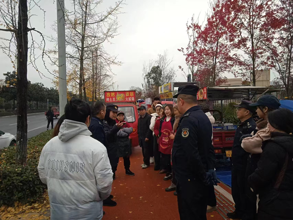 | 执法人员正在给摊贩讲解、传达管理要求 |