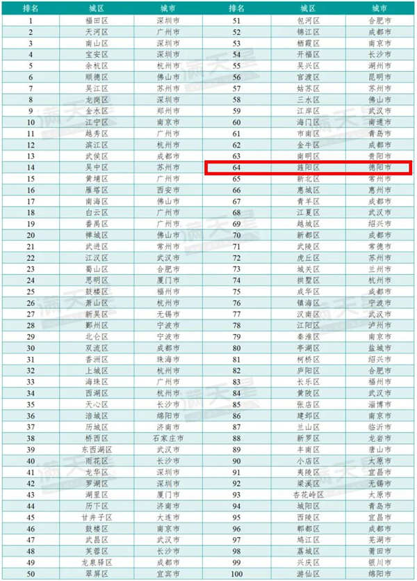 近日,赛迪顾问正式发布投资竞争力百强区(2024),德阳市旌阳区上榜,排名第64位。