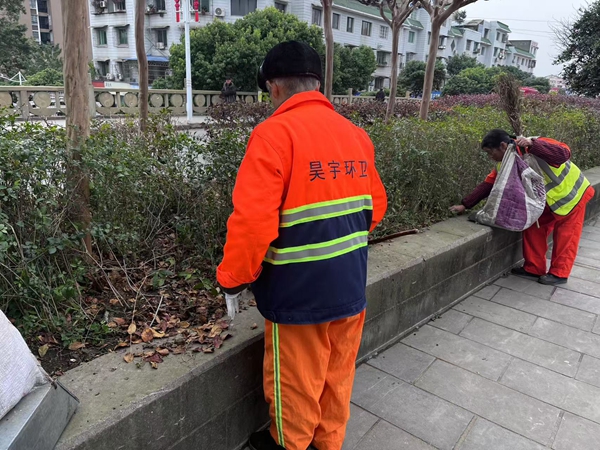 整治期间,在保证普扫工作的同时,一是抽调环卫工人对万安路、雨邨路、大学路等城区各道路的小广告进行集中清理,清洗和规范摆放道路两边果皮箱等环卫收集设施;二是擦拭潺亭水城、八景苑广场的公共长椅,打扫天花板、吊灯处的蛛丝尘絮,清理综合市场、宇隆广场、东西街等人员密集处空调外机、配电箱的卫生死角处的垃圾杂物;三是清理亲水平台、背街小巷、城乡接合部等区域周边的落叶、杂草等,并对绿化带可视范围内以及河道两岸的垃圾进行捡拾;四是安排4名巡查人员进行城区卫生动态巡查,针对发现的大件垃圾堆积、垃圾满溢等问题立即进行清理处置。