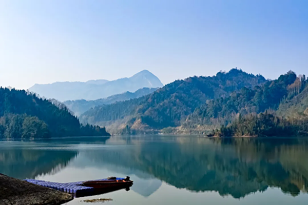 冰川湖以其清澈蔚蓝的湖水和两岸起伏的山峦叠嶂而闻名,被比喻为一颗硕大的翡翠,深至60余米的湖水在微风吹拂下泛起滟潋褶波。