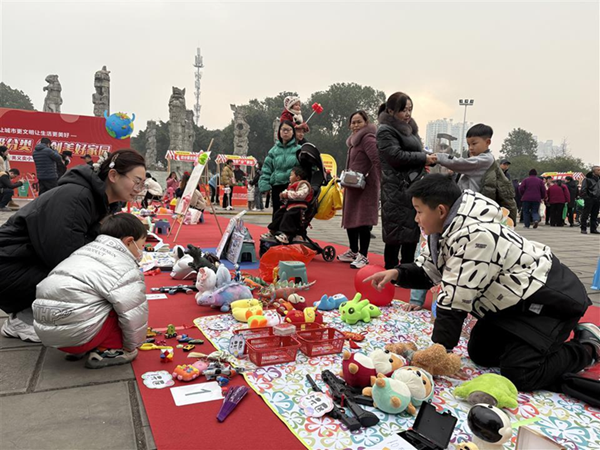 与此同时,在石刻公园广场上,别具特色的义卖会也吸引众多居民驻足。义卖物品琳琅满目,“摊主”大声吆喝,不少家长带领着小朋友正在挑选心仪物品。此外,现场还设置了多个垃圾分类互动游戏点位,大家踊跃参与,在寓教于乐中进一步加深了对垃圾分类的认识。